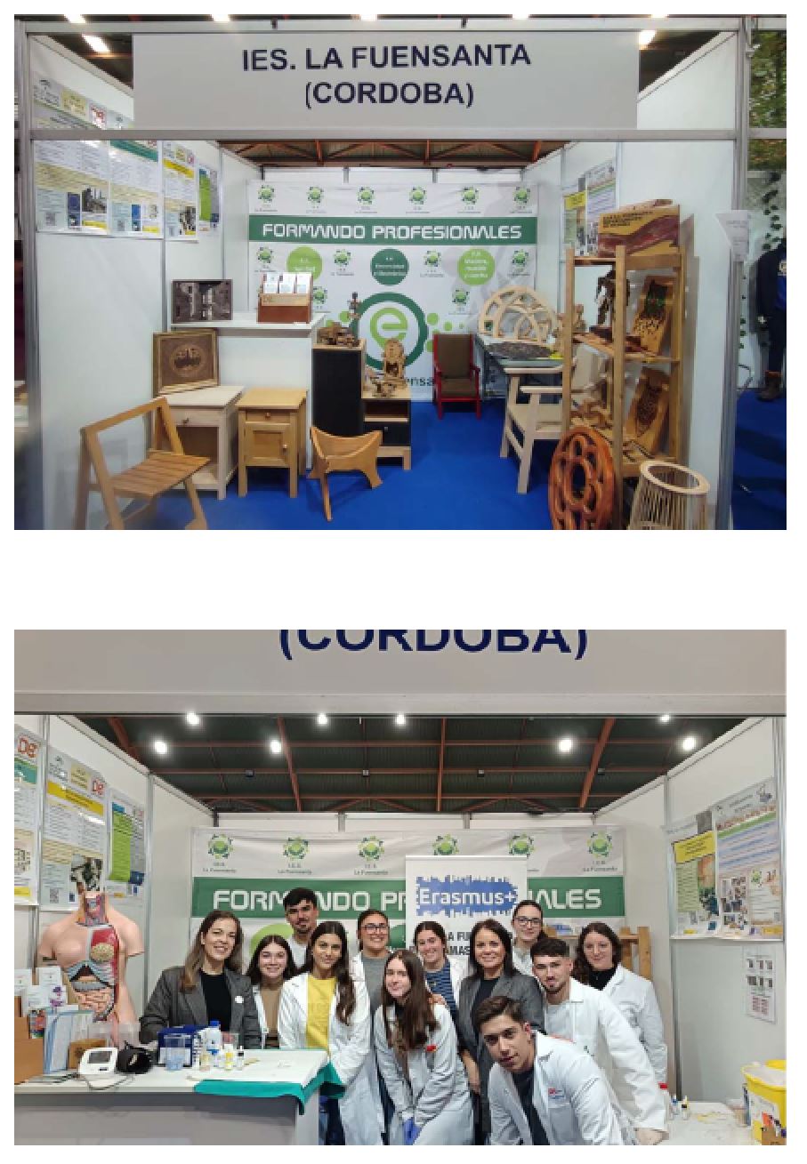 El IES La Fuensanta participó activamente en el XXI Salón del Estudiante de Lucena, donde mostró con orgullo sus ciclos formativos. Durante el evento, los visitantes pudieron conocer de cerca las oportunidades que ofrecen las familias profesionales de Sanidad, Electricidad – Electrónica y Madera, Mueble y Corcho, reafirmando el compromiso del centro con la excelencia educativa y la innovación.