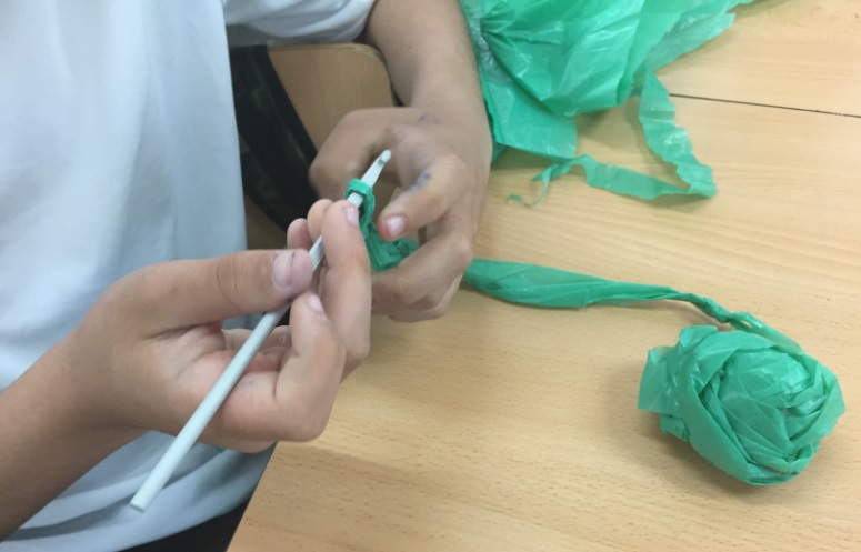 El proyecto fue llevado a cabo con la colaboración de las familias, de la asociación de padres y madres "El Pocito", del profesorado y de la coordinadora del programa Aldea, Pero los verdaderos protagonistas, fueron los alumnos y alumnas de 1º de ESO y su profesora de Geografía e Historia que, utilizando metodología ABP (aprendizaje basado en proyectos), integró "Recapacicla" y el taller de trenzado al proyecto “La máquina del tiempo”. En concreto, en la parte en que se tratan contenidos de Prehistoria. Así fue como este alumnado se enfrentó al reto que suponía intentar tejer y realizar un producto artesanal acercándose al pasado, pero eso sí, sin utilizar fibras vegetales, ni animales… sino reutilizando bolsas de la compra, dando un segundo uso al plástico.