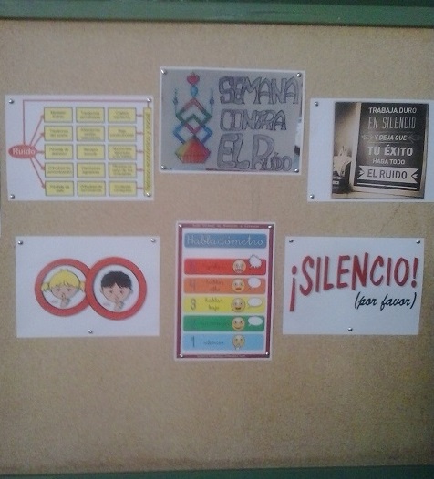 Pues bien, aprovechando que el 28 de abril, viernes, se celebraba el día internacional sobre la salud laboral y la prevención de riesgos, lanzamos la campaña contra el ruido con una exposición de carteles en los tablones de anuncios de los dos recintos de nuestro centro.