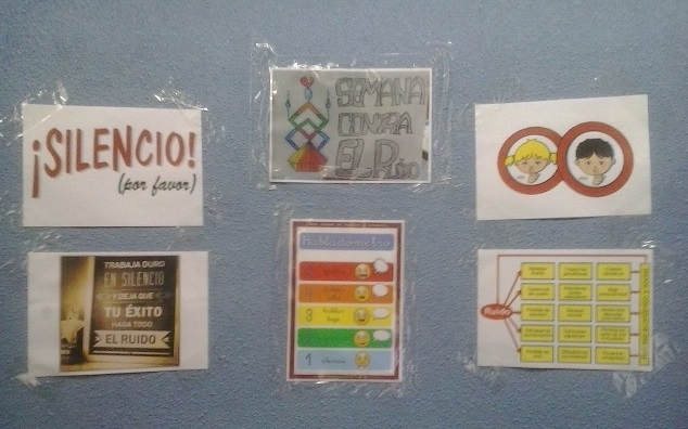 Además, como queríamos ser más ambiciosos, intentamos que el asunto se tratara en las clases, sobre todo en las horas de tutoría. A tal efecto, preparamos una presentación en vídeo: “En busca del confort acústico perdido” de la Sociedad Española de Acústica, y la enviamos a los tutores con el ruego de que la pusieran a los alumnos y tras el visionado de la misma, comentaran con ellos, la importancia que, para cualquier actividad, y, especialmente para la nuestra, tienen los niveles excesivos de ruido a los que nos vemos expuestos y cómo, con un poco de cuidado por parte de todos individualmente, podemos conseguir unos resultados colectivos excelentes. También le rogamos que animaran a seguir las consignas que aparecen en el vídeo y en los carteles, con el fin de conseguir un buen ambiente para la práctica del proceso de enseñanza-aprendizaje.