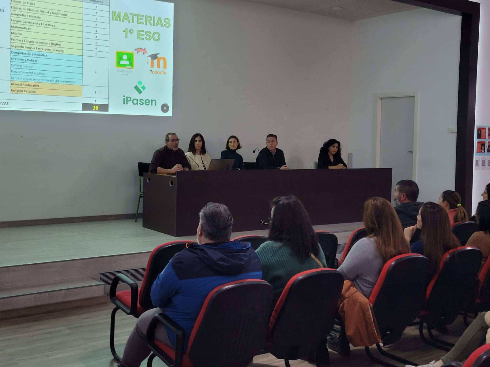 En segundo lugar, a nuestro incondicional espacio inclusivo. A los departamento involucrados en la jornada. Y a toda la comunidad educativa que, directa o indirectamente se ha involucrado. La sesión de la tarde fue dedicada a las familias. Nuestra directora, "jefazo" y "jefaza" de estudios, nuestro orientador y el dpto. de convivencia, expusieron las líneas de trabajo, así como, el funcionamiento y oferta educativa de nuestro centro. Terminaron la jornada, visitando las instalaciones. Ha sido todo un placer.