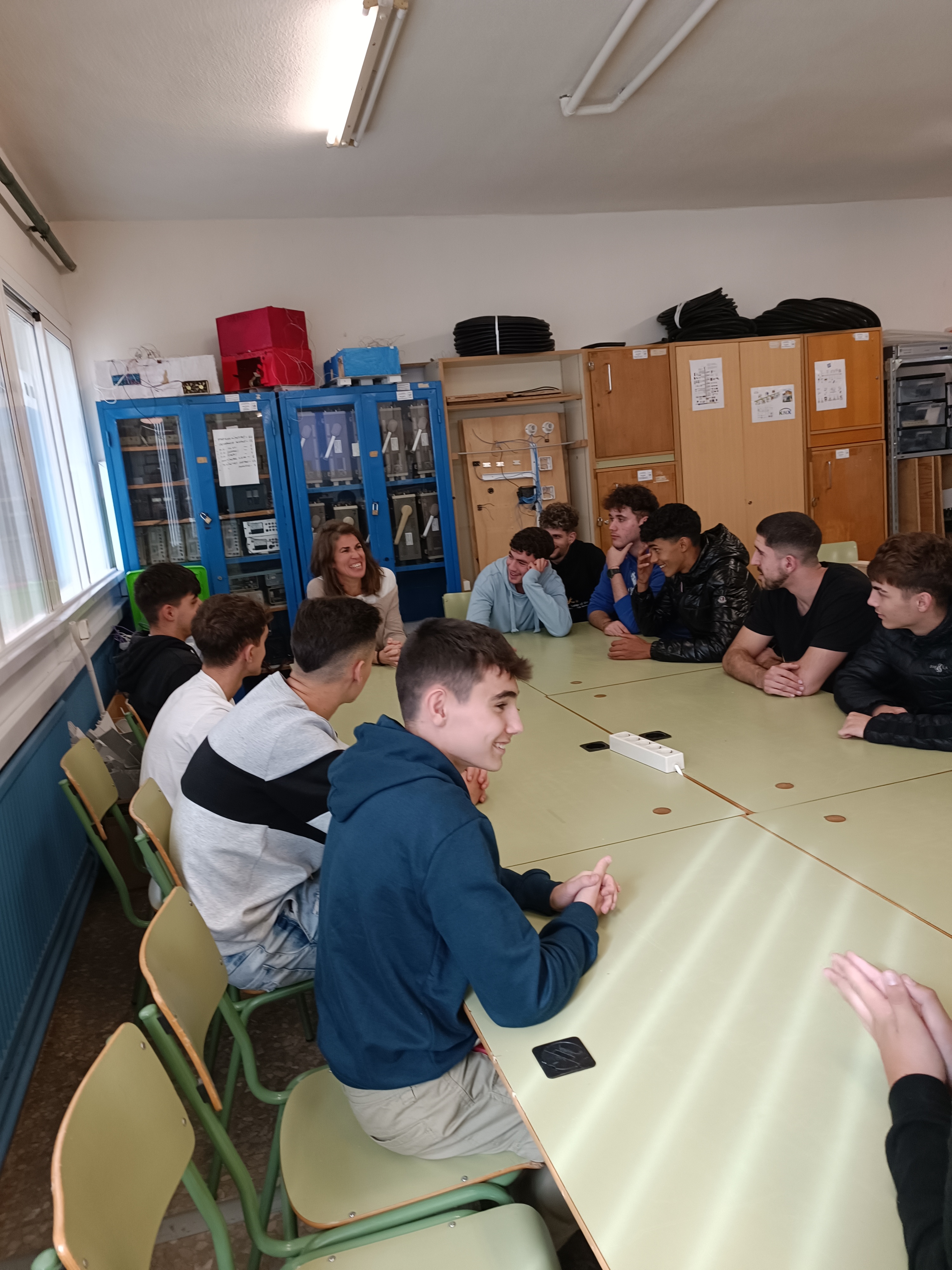 El taller lo ha impartido durante dos horas, Marta Portillo, Trabajadora social y terapeuta psico-corporal y de movimiento de la Asociación Espacio Capriola. En este taller han participado los alumnos de 1º de Instalaciones de telecomunicaciones. Este grupo es muy heterogéneo, y necesitado de: