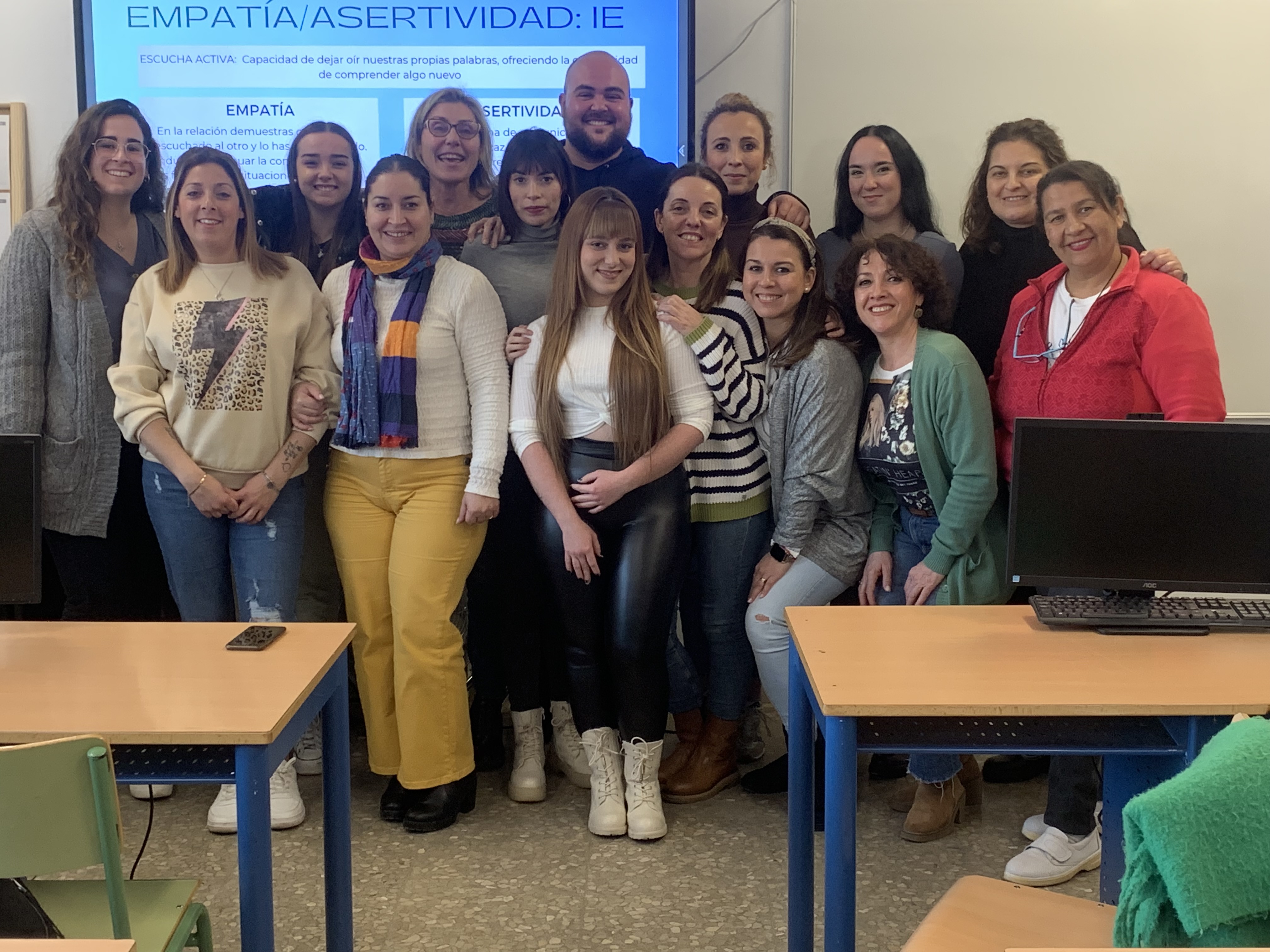 A lo largo del primer cuatrimestre de este curso 23/24, en el marco del módulo de Relaciones en el Equipo de Trabajo, el alumnado de 2º curso de Técnico en Cuidados Auxiliares de Enfermería - TCAE - Adultos ha participado en la actividad "Taller de Autoconocimiento" impartido por Mª del Mar Marco Vargas. Profesional con una amplia experiencia y formación en el área del Desarrollo Personal y las "soft skills": Graduada en Relaciones Laborales y Recursos Humanos, Máster en Dirección y Gestión Estratégica de Recursos Humanos, Programa de Mindfulness, Máster en Hipnosis & Hipnosis Ericksoniana, con formación en Yoga: Hata-Vinyasa Yoga y Power Yoga, Asthanga Progresivo y Yoga Coach, entre otras formaciones.