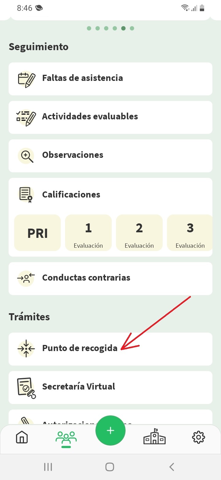 Entrar en Ipasen Y acceder al punto de recogida del alumno o alumna: